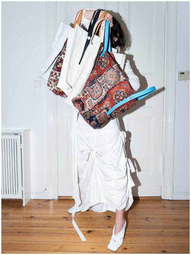 The collection is developed in collaboration with creatives from different disciplines, such as design, art or architecture. All of them are interpreting the philosophy of PB 0110, the task is always different, but they all have in common that they rethink our understanding of the brand and of bags and accessories and unite it with their vision. The result is a lively creative discourse and, over time, a family of different products that are all based on the same DNA: high-quality materials, craftsmanship and a belief in the deep meaning of beloved objects in our everyday lives. The designers' initials appear in the name of each model.