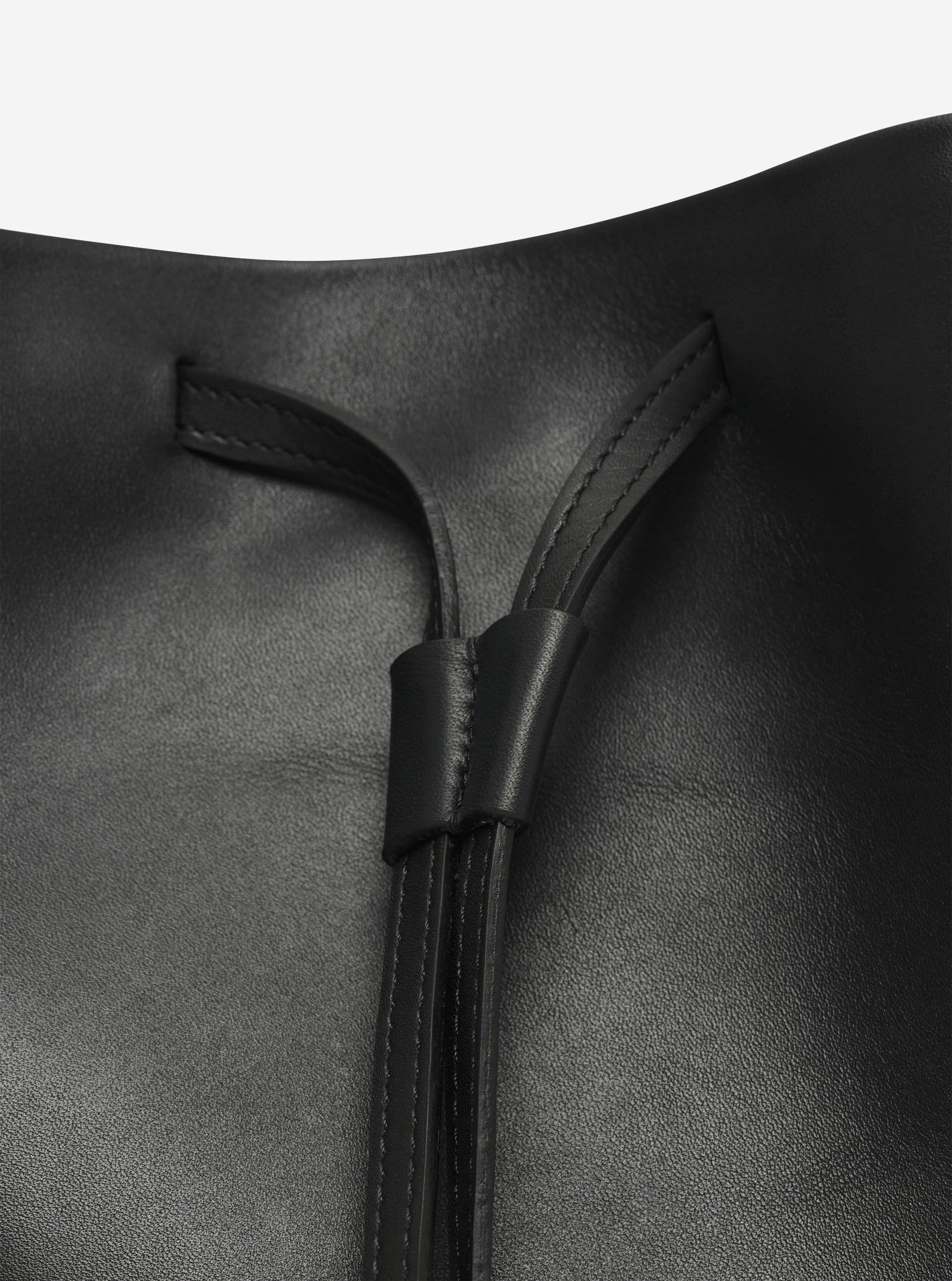In 2014, we presented our first Bucket Bag. Since then we love this bag, its oval, infinite shape, the way it hugs the body in different ways and its lightness. So there are many reasons to keep thinking about the typology of this bag. For the AB 103.1 model, we combine a soft leather tanned in Germany as the main material and a stiffer vegetable-tanned leather from Belgium for the strap. Both leathers have been awarded the GOLD standard by the Leather Working Group and become increasingly supple over the years.